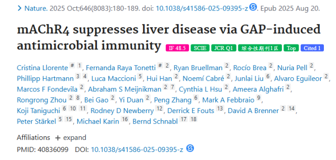 【原文链接】:mAChR4 suppresses liver disease via GAP-induced antimicrobial immunity - PubMed